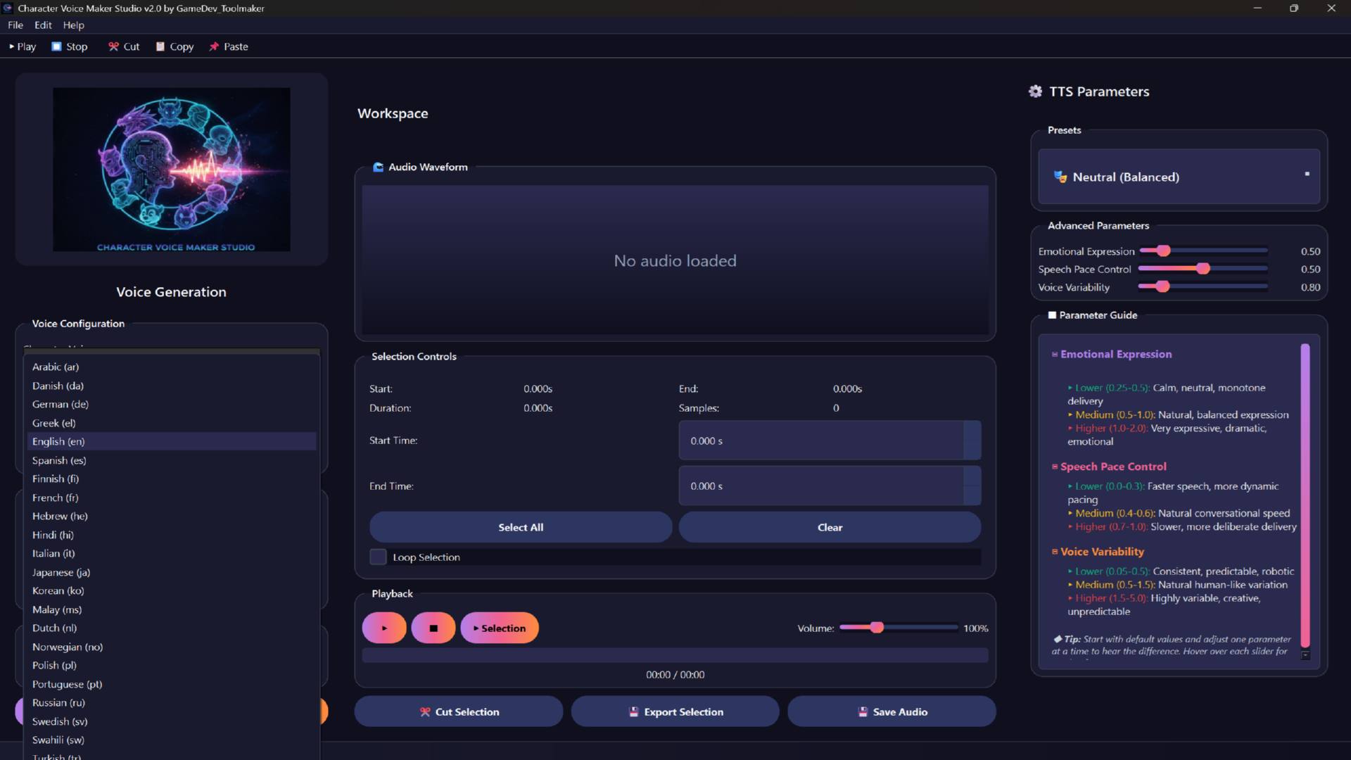 text-to-speech, TTS, voice synthesis, character voice, audio interpolation, game development audio, voice acting software, speech synthesis, game audio, multilingual TTS, emotional voice, voice maker, audio production, video production, podcast voices, audiobook narrator, NPC dialogue, voice generator, text to audio, voice creator, voiceover software, dialogue generator, game voiceover, indie game audio, content creation