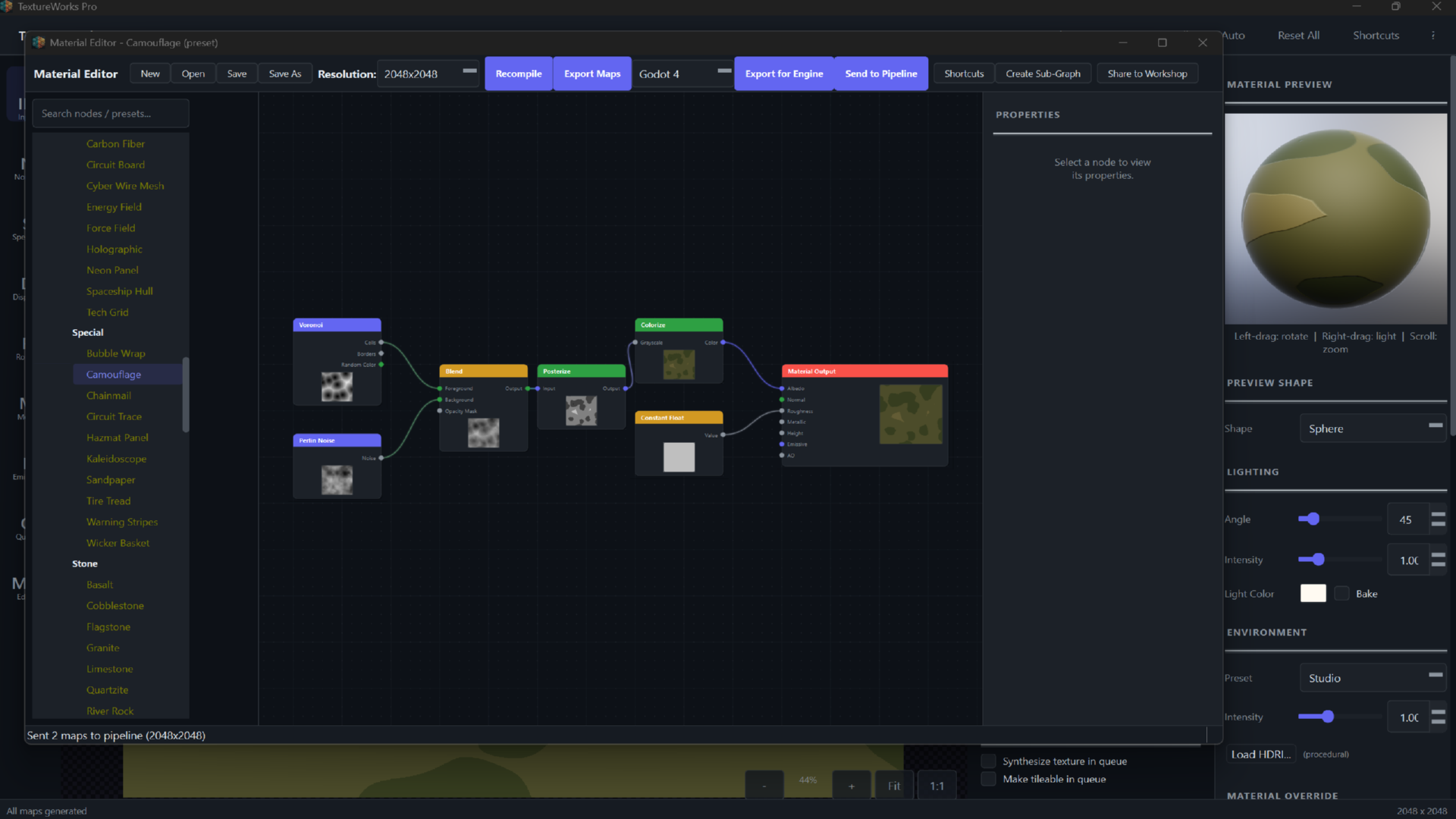 When you're ready for more, the node-based editor, texture synthesis engine, and preset library are waiting -- but they never stand between you and getting work done.